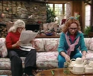 On a very early Saturday afternoon when Tony happens to be ironing his freshly washed laundry using an ironing board with a spray can of some starch while watching the hockey game live on a portable television set inside Angela's kitchen, he soon starts shadow boxing while the referee tries to break up the recent violent fight on the ice during the hockey game eventually deciding to go back to ironing when she finally enters her kitchen in order to refill her black and white decorative ceramic coffee cup while wearing her tortoiseshell reading glasses, and he now offers to wash her dirty laundry especially during the time that she actually has to listen to the violent fight during the hockey game while refilling her cup full of freshly brew coffee from the automatic drip maker. Angela is now completely disgusted especially after watching a violent fight that has just broken out during the hockey game on a portable television set inside her kitchen holding a coffee cup, Tony decides to offer her a freshly prepared cheese sandwich while she seems distracted by the beer commercial which is actually today's sponsors of the hockey game while enjoying her cup of fresh brewed coffee, he takes two slices from a package of fresh white bread, including a room temperature fresh slice of American Cheese from his pile individually unwrapped slices, and he finally puts it together on a black and white decorative ceramic plate.